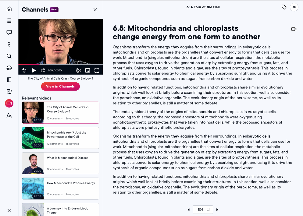 Recently, we acquired a new product, called Channels, to add to the Pearson+ family. It includes a wide range of video explanations and practice questions that can be synced up to a student’s course or textbook.